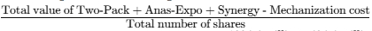 - Number of shares = 40m (Two-Pack) + 25m (Anas-Expo) = 65m shares