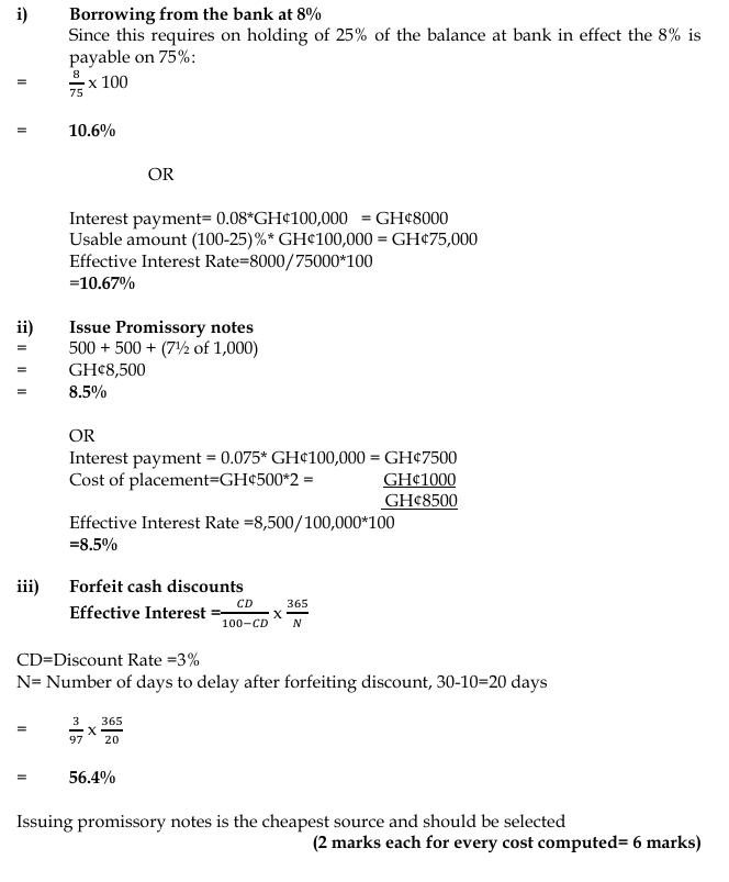 ii) Issue promissory notes at 7.5%. The cost of placing the issue would be GH¢500 each six months.