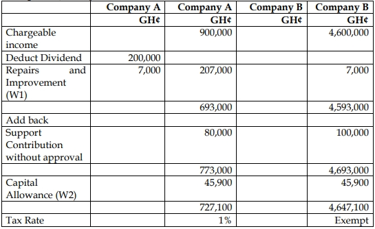 The following relates to information of two companies, both resident in Ghana, for 2021 year of assessment with the basis period January to December each year: