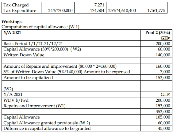 3. Two vehicle engines, each costing GH¢80,000, were purchased by both companies. Pool 2 had a written down value of GH¢200,000.