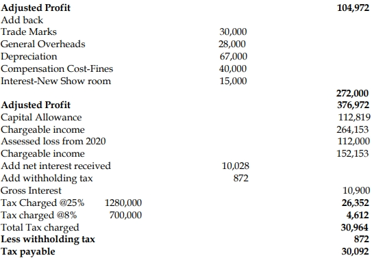 d) Compute any other tax liability apart from the company tax. (1 mark)