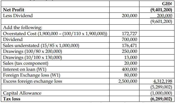 - Disallowed foreign exchange loss: GH¢200,000 – GH¢120,000 = GH¢80,000