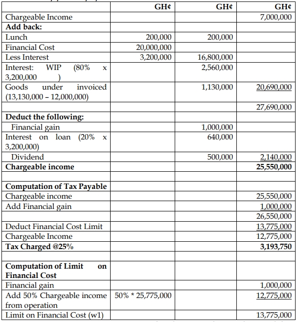 - Interest related to working capital (20%, GH¢640,000) is an allowable expense and can be deducted for tax purposes.