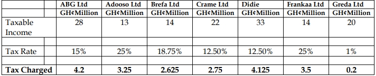These companies are located in Accra and Tema, where there are no tax incentives. They pay the standard corporate tax rate of 25%.