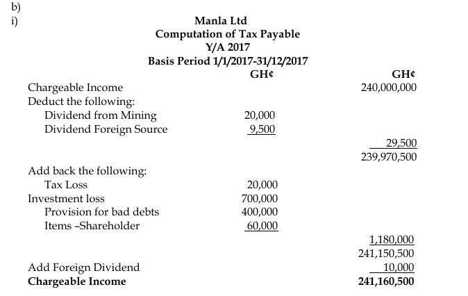 i) Compute the taxes payable by Manla Ltd. (6 marks)