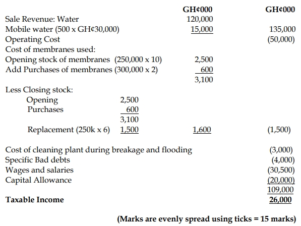 iv) A holding tank for the salt broke and flooded the manufacturing plant. The cost of cleaning the plant was GH¢3,000,000. The holding tank had to be replaced and the replacement holding tank cost AquaFresh Ltd GH¢10,000,000, which was funded mainly by insurance proceeds of GH¢7,000,000. The original holding tank had cost GH¢6,000,000 and had a tax written down value on 1 January 2022 (the start of its last year of tax useful life) of GH¢1,000,000. These tanks are not considered part of the process of manufacture as they merely hold the salt.