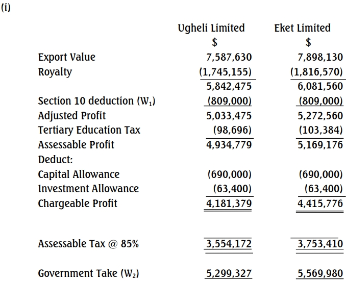 iii. Determine the Tax Inversion Penalty and the Revised Government Take from the operations of the two companies. (Tax Inversion Rate is 35%) (3 Marks)