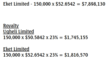 Revised Government Take (RGT) for Ugheli Limited: