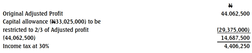 - Losses claimed, amounting to N128,025 was disallowed. Included in the adjusted profit figure is N6,962,500 for Depreciation.