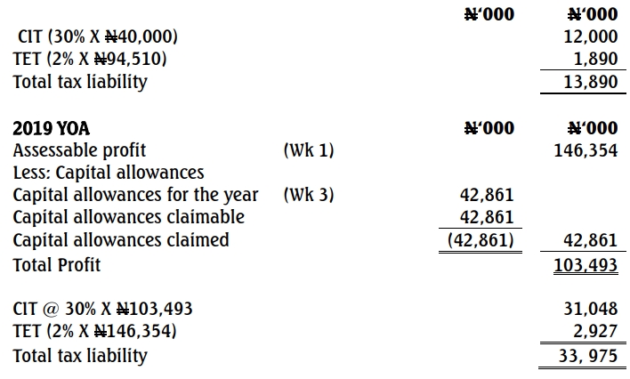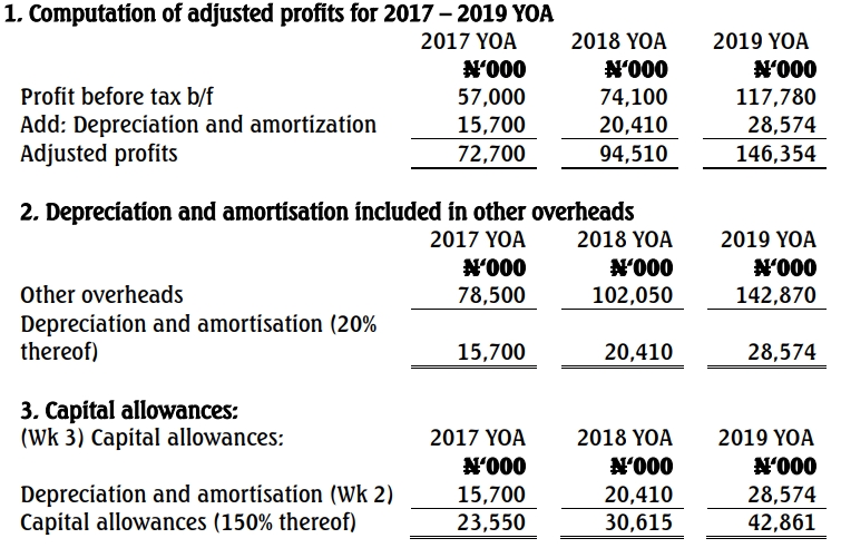 Computation of tax liabilities for 2017 – 2019 years of assessment (YOA)