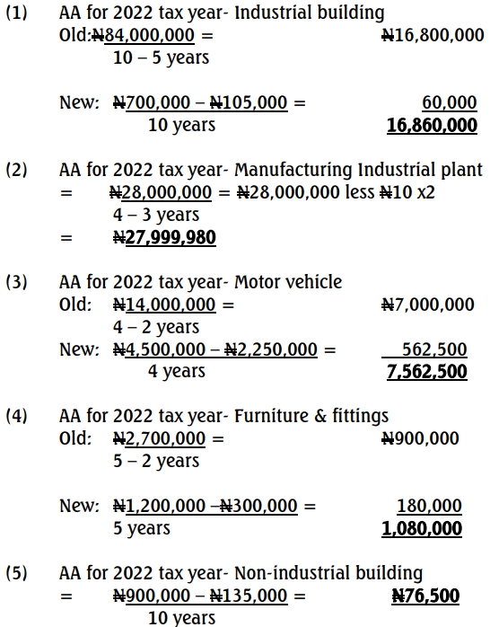 Following the above, the company has zero total profit for the period under review. Section 13 of the Finance Act 2020 stipulates that any company that falls into this category (zero or insufficient profit) has to pay a minimum tax. Thus, the company is liable to pay a minimum tax of ₦1,946,650. There is also a tertiary education tax that is compulsory for companies operating in Nigeria to pay. The new rate is 2.5% of adjusted profit, which is ₦1,489,000. The total tax liabilities for the 2022 tax year is ₦3,435,650.