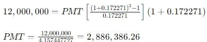 On the advice of the Finance Manager, the company will start saving from now to raise the required amount to buy the plant in three years’ time. Consequently, the company has signed an investment agreement with DT Financial Services Ltd. Per the agreement, the company will deposit equal amounts into an interest-bearing account at the beginning of each of the next three years. The annual nominal interest rate on the account is 16%, but interest will be compounded monthly.