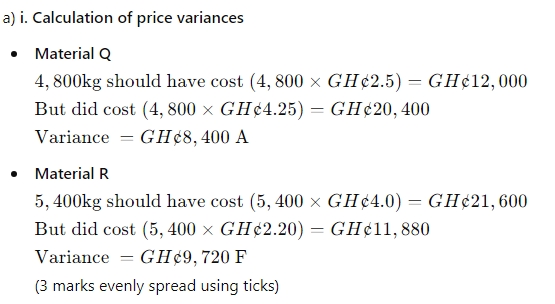 i) Calculate the price variance for each material. (3 marks)