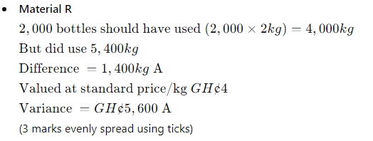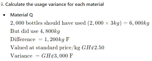 ii) Calculate the usage variance for each material. (3 marks)