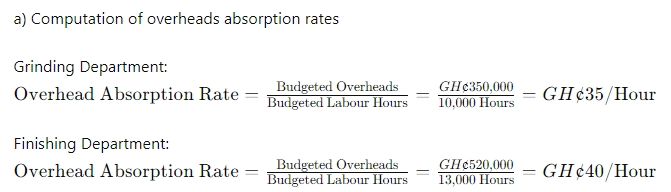 Direct labour: Grinding department 400 hours @ GH¢10 each 4,000
