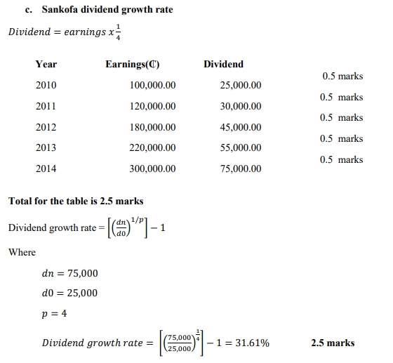 Calculate the average dividend growth rate for Sankofa Ltd. (5 marks)
