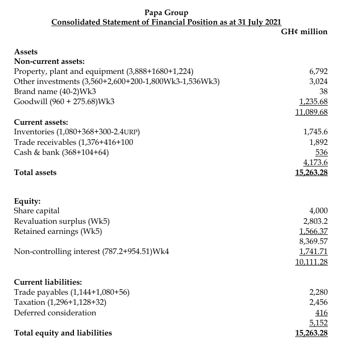 Required: Prepare the Consolidated Statement of Financial Position for Papa Group as of 31 July 2021, in accordance with IFRS.