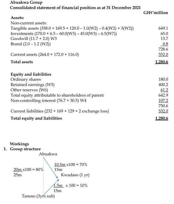 Below are statements of financial position of three companies: Abuakwa, Tanoso, and Kwadaso as at 31 December 2021: