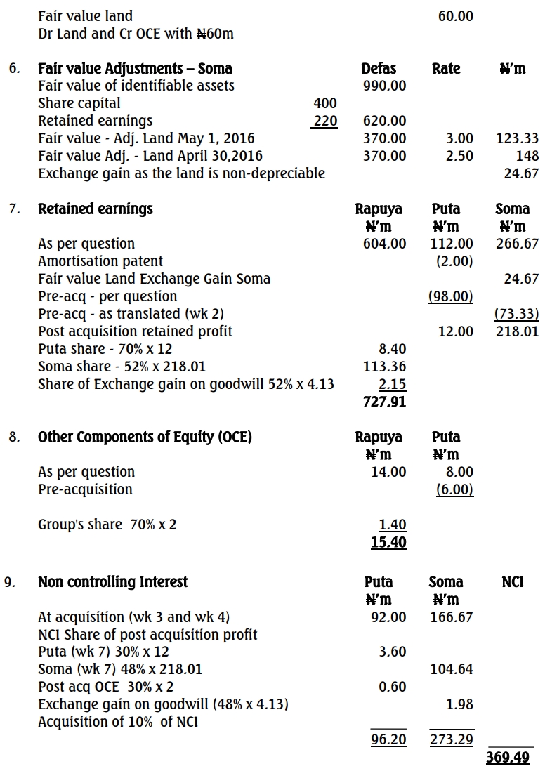 Rapuya Plc. is a Nigerian public limited company operating in the mining industry. The draft Statements of Financial Position of Rapuya Plc., and its two subsidiaries, Puta Limited and Soma Limited as at April 30, 2017, are as follows: