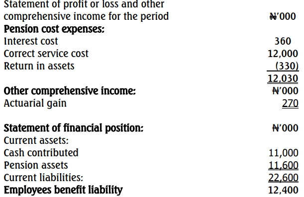 • Expensing the Employer’s Contribution of ₦11 million in the statement of profit or loss and other comprehensive income.