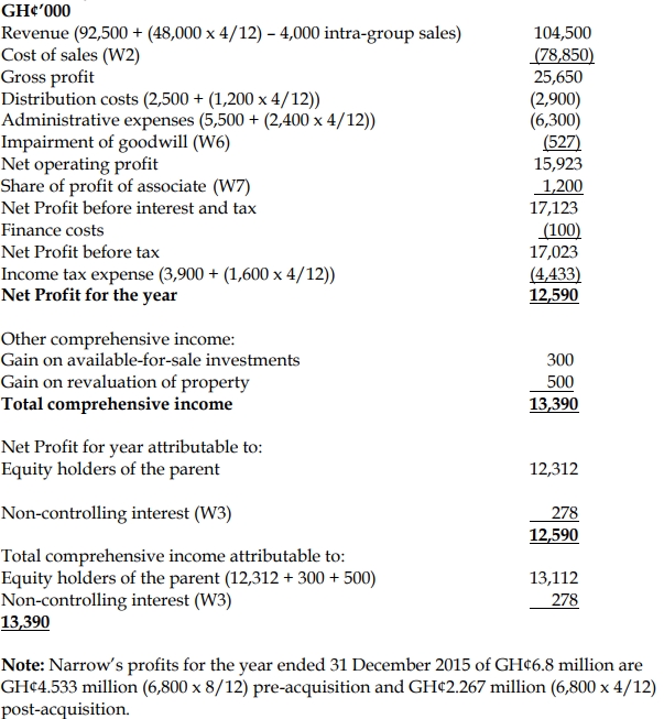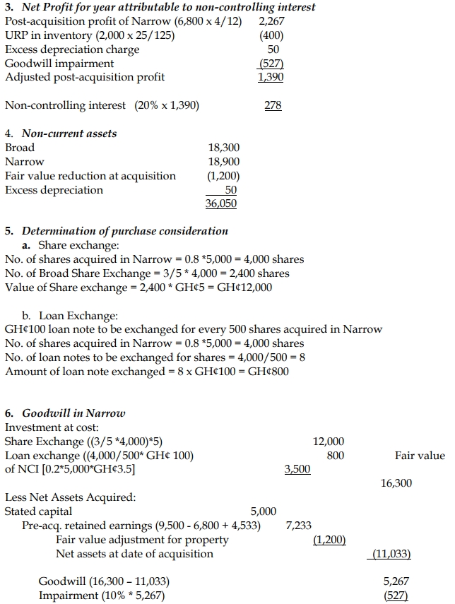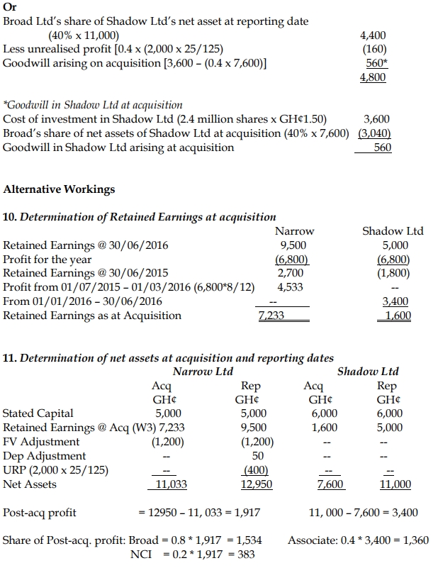 - Sales from Narrow Ltd to Broad Ltd throughout the year ended 30 June 2016 were GH¢12 million. Narrow made a mark-up on cost of 25% on these sales. Broad Ltd had GH¢2 million (at cost to Broad Ltd) of inventory that had been supplied in the post-acquisition period by Narrow Ltd as at 30 June 2016.