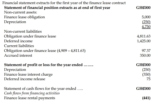 Hard-Work Ltd is a public limited company in Ghana and owned a building on which it raised finance to support its operations. On 1 June 2015, Hard-Work Ltd disposed of the building for GH¢5 million to a finance company when the carrying amount of the building was GH¢3.5 million. However, the same building was immediately leased back from the finance company for a period of 20 years, which was considered to be equivalent to the majority of the asset’s useful economic life. The lease rentals for the period amounted to GH¢441,000 payable annually in arrears. The interest rate implicit in the lease is 7%. The present value of the guaranteed minimum lease payments is the same as the sale proceeds.