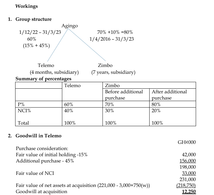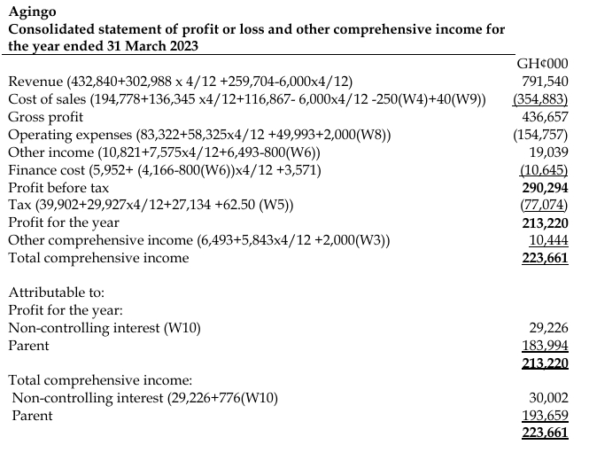 Prepare the consolidated statement of profit or loss and other comprehensive income of Agingo’s group for the year ended 31 March 2023. (All your workings are to be rounded to the nearest thousand).