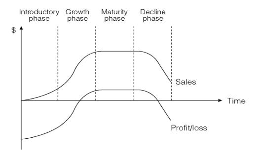 The stages should be represented in a standard product life cycle graph