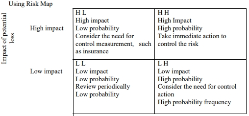 Assessing risk involves understanding both the impact and probability of each risk. This can be done using a Risk Map, which is a 2×2 matrix: