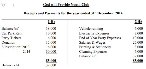 (b) The following information relates to “God will Provide” Youth Club for the accounting period of 2014.