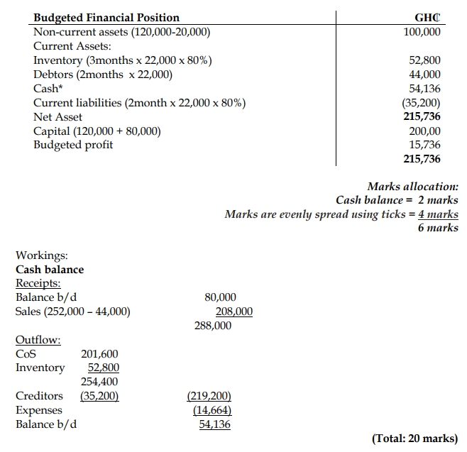 At the start of the budget period, a non-current asset with a cost of GH₵120,000 and a useful life of 6 years was purchased and transferred to one of its branches. In addition, a cash amount of GH₵80,000 was provided for the operations of Chico Ltd.