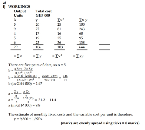 ii) Use your results to estimate total costs in a week when 8 units are produced. (3 marks)