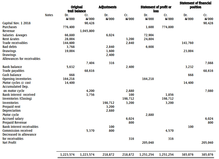 (vi) Additional amount of irrecoverable debts of N2,840,000 is to be written off
