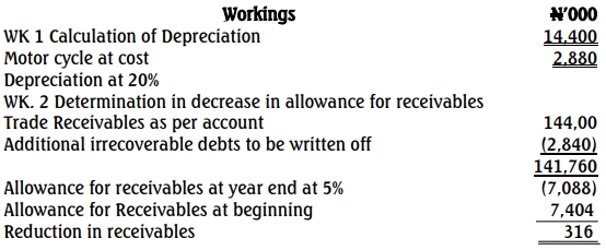 (vii) Bank interest of N100,000 has fallen due but is yet to be received