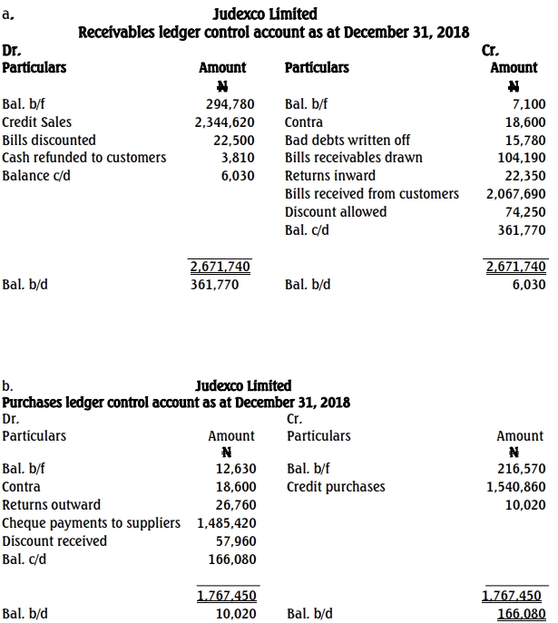 The following balances were extracted from the books of Judexco Limited on December 31, 2018: