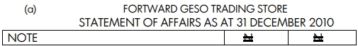 Prepare the Statements of Affairs of Fortward Geso Trading Stores for the two years to show: