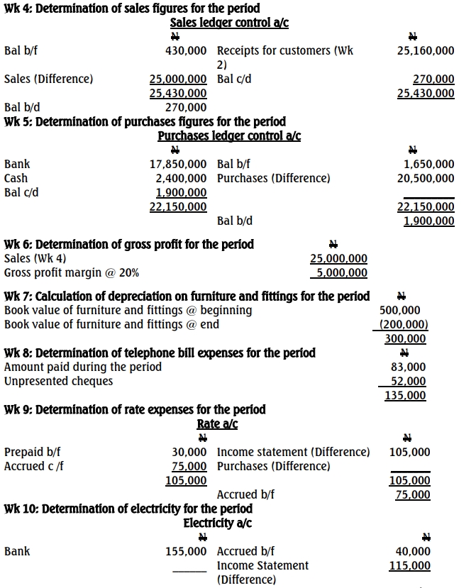 Mr. Pamona owns a corner shop in Lagos. On 30 December 2012, vandals looted his shop, stole all his inventories and cash of ₦75,000. Mr. Pamona was fully insured against theft and he has asked you to prepare his accounts to enable him estimate his insurance claim. Your investigation revealed the following: