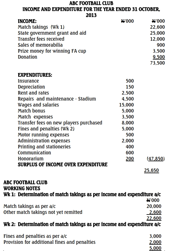 The information below relates to ABC Football Club in respect of the year ended 31 October 2013: