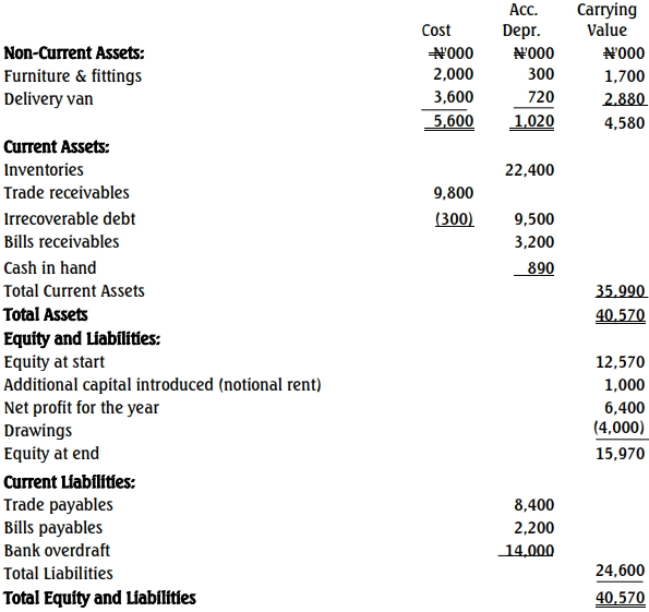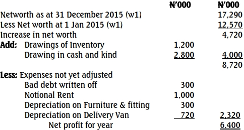 During the year, Mr. Mala used part of the inventories for domestic affairs which was agreed at N1,200,000. He drew cash for private expenses at frequent intervals. He estimated his drawing in cash at N2,800,000 for the year.