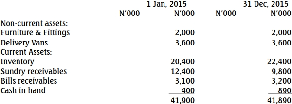| Item | January 1, 2015 (N’000) | December 31, 2015 (N’000) |