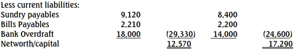 | Bank overdraft | 18,000 | 14,000 |