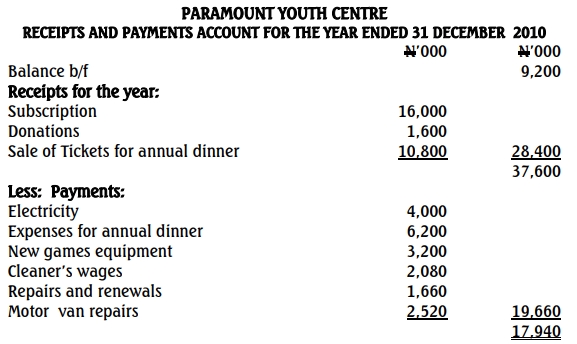 (a) The Receipts and Payments Account. (4 ½ Marks)