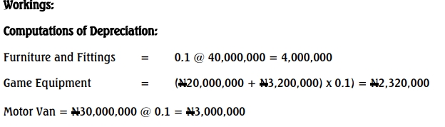 2. Depreciation should be calculated at 10% of cost of the assets.