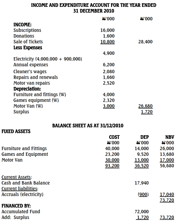 (b) The Income and Expenditure Account and Balance Sheet as at 31 December 2010. (10 ½ Marks)