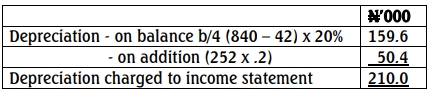 What should be the amount of depreciation charged to the income statement during the year if the plant and machinery were depreciated at 20% per annum on a straight line basis?