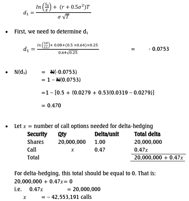 Thus, the bank needs to sell 42,553,191 calls for delta-hedging.