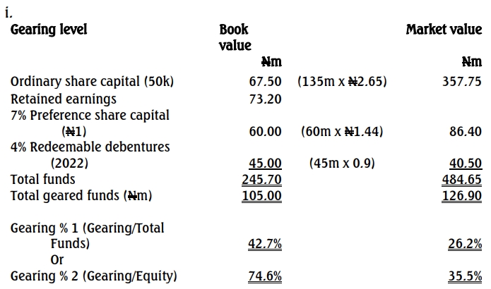 a. i. Calculate LL Plc.’s gearing ratio using both book and market values. (5 Marks)