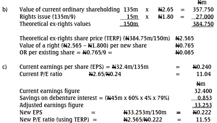 The Board is considering a 1 for 9 rights issue of ordinary shares, and this additional funding would be used to redeem 60% of LL Plc.’s redeemable debentures at par. However, some of LL Plc.’s directors are concerned that this issue of extra ordinary shares will cause the company’s ordinary share price and its earnings per share (EPS) to fall by an excessive amount, to the detriment of LL Plc.’s shareholders. Accordingly, they are arguing that the rights issue should be designed so that the EPS is not diluted by more than 5%.