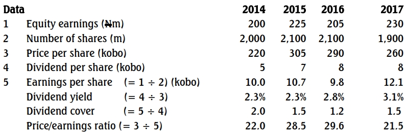 | Dividend per share (kobo) | 5 | 7 | 8 | 8 |