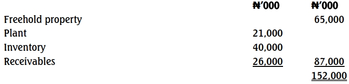 In these circumstances, it is estimated that the freehold property would realize N65,000,000, the plant N21,000,000, the inventory N40,000,000, and the receivables would pay up in full. Preferential payables, included in the statement of financial position figure for payables, amounted to N27,000,000.